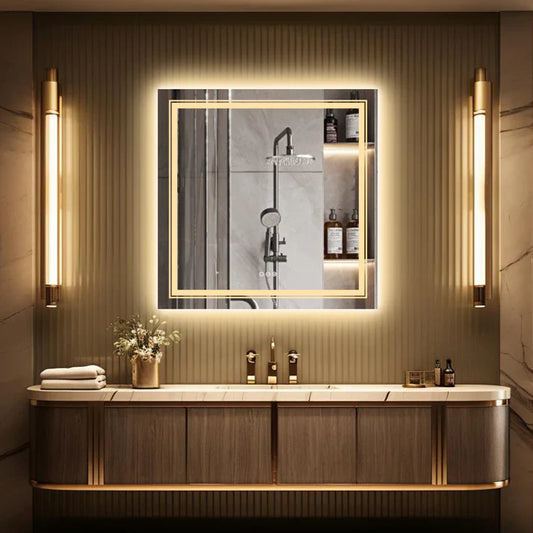 Espejo Inteligente de Baño LED Cuadrado con Doble Iluminación, Montaje en Pared, Antivaho