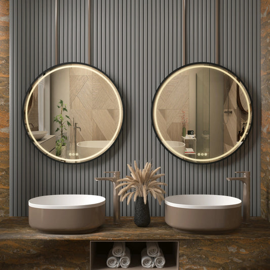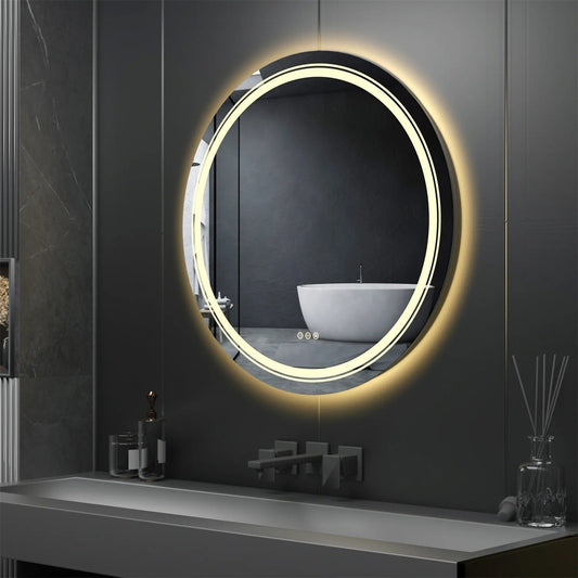 Espejo Redondo Inteligente para Baño con Doble Iluminación LED, Regulable y Antivaho, Montaje en Pared